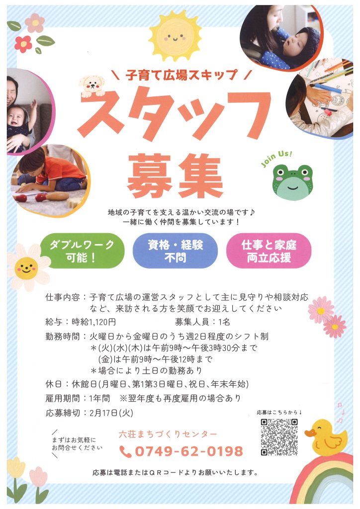 4月から子育て広場のスタッフとして一緒に働いてくださる仲間を募集しています♪